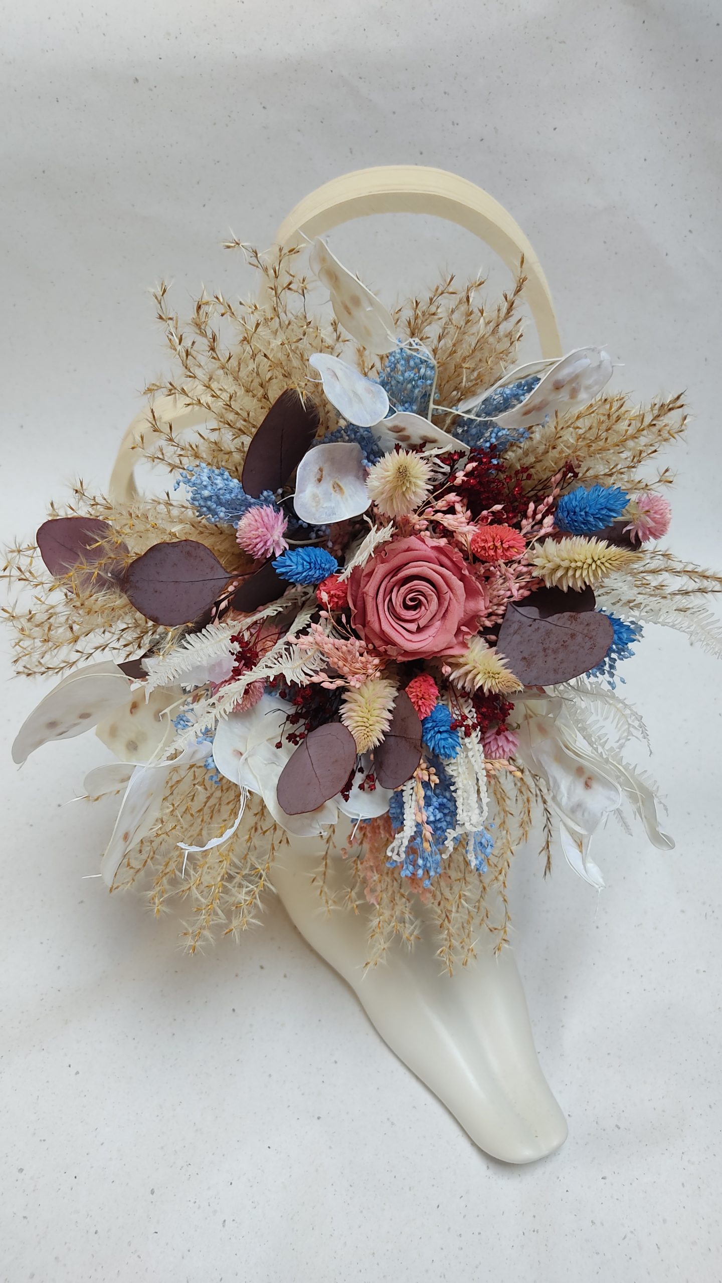 J’aime travailler les fleurs séchées et stabilisées, issues principalement de la Loire-Atlantique et d’Europe 🌍