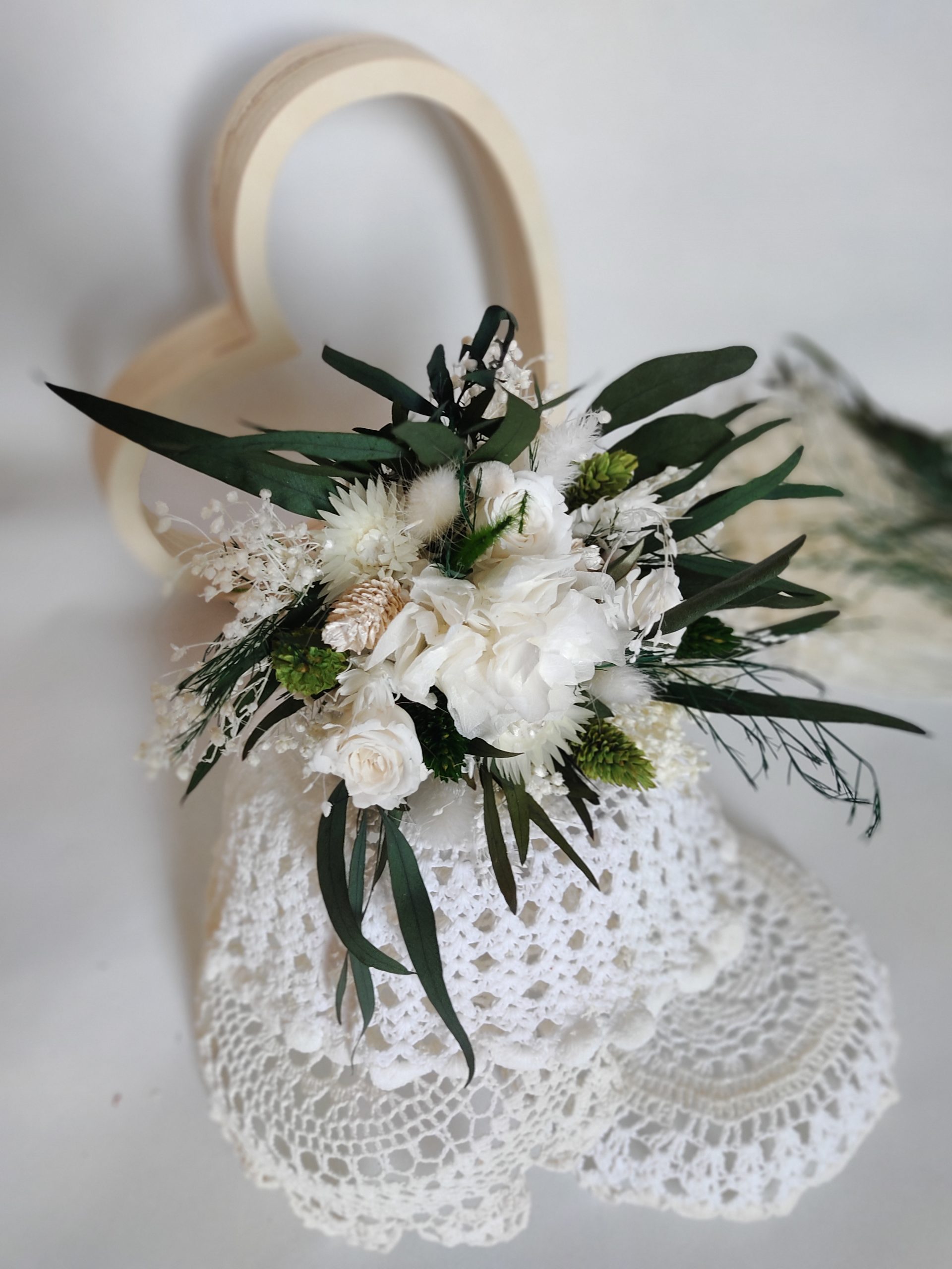 Je compose mes assemblages floraux avec des végétaux et des montages adaptés à chaque univers, et donc à chaque création. L’ensemble est valorisé par des matériaux décoratifs allant du ruban au coton, en passant par le fil de laiton et le fer.