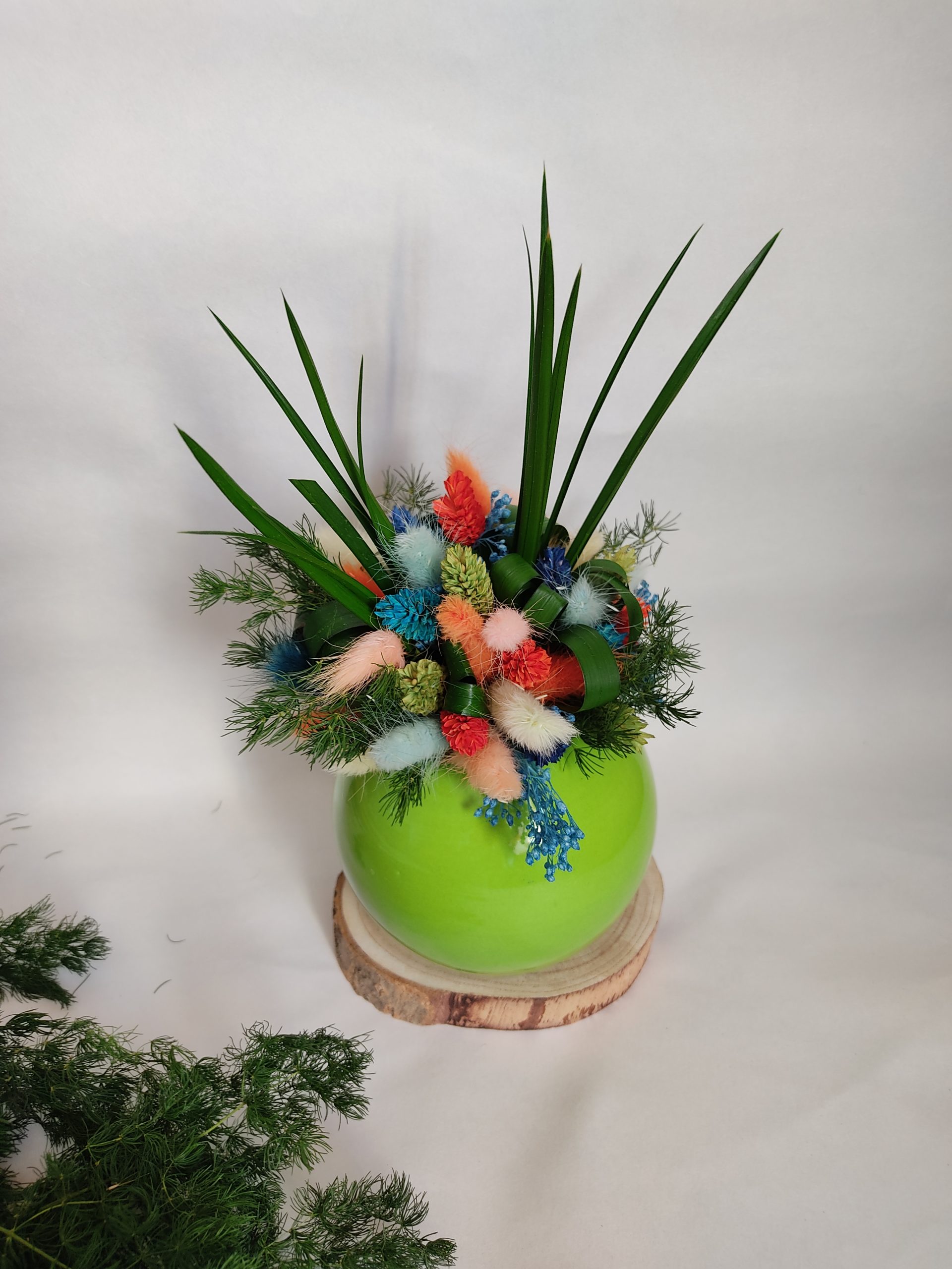 Mes compositions florales sont faites à la main, avec soin, pour réaliser des arrangements uniques. Du support au choix des fleurs, chaque élément est sélectionné et travaillé artisanalement.