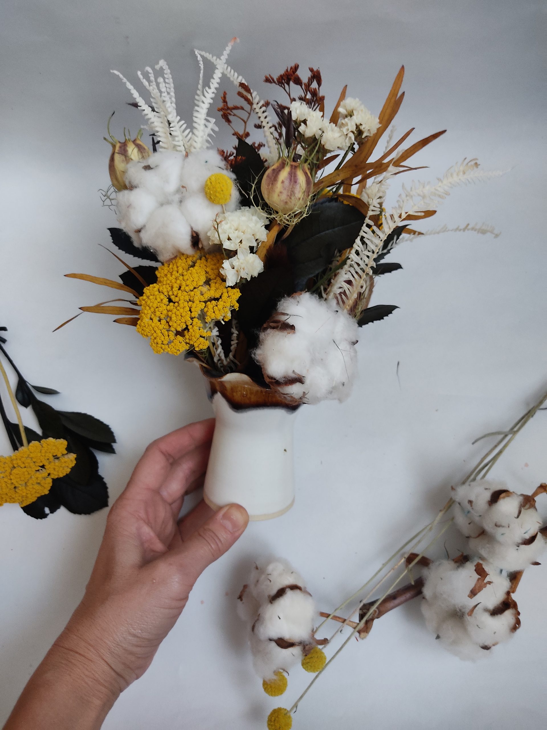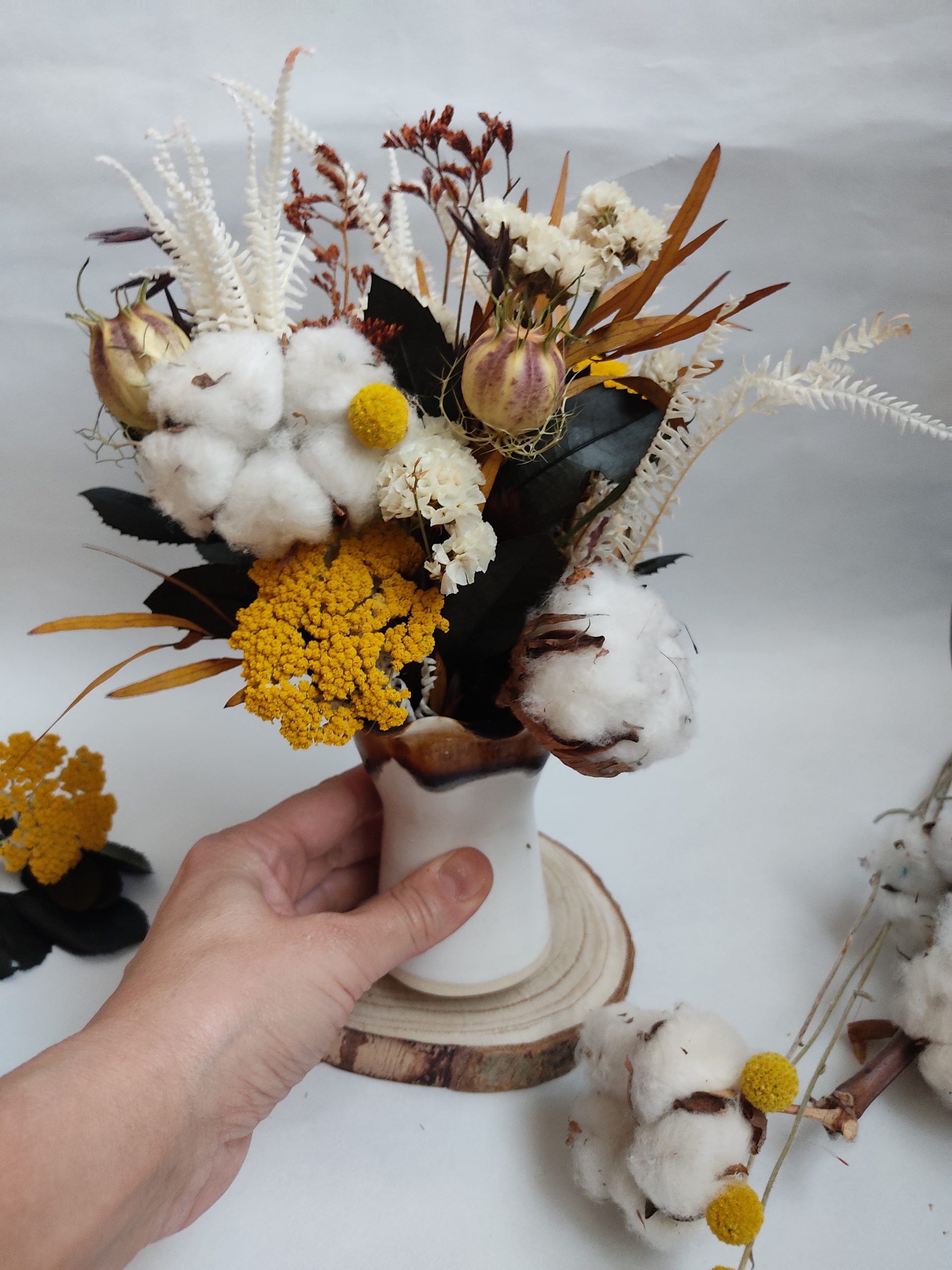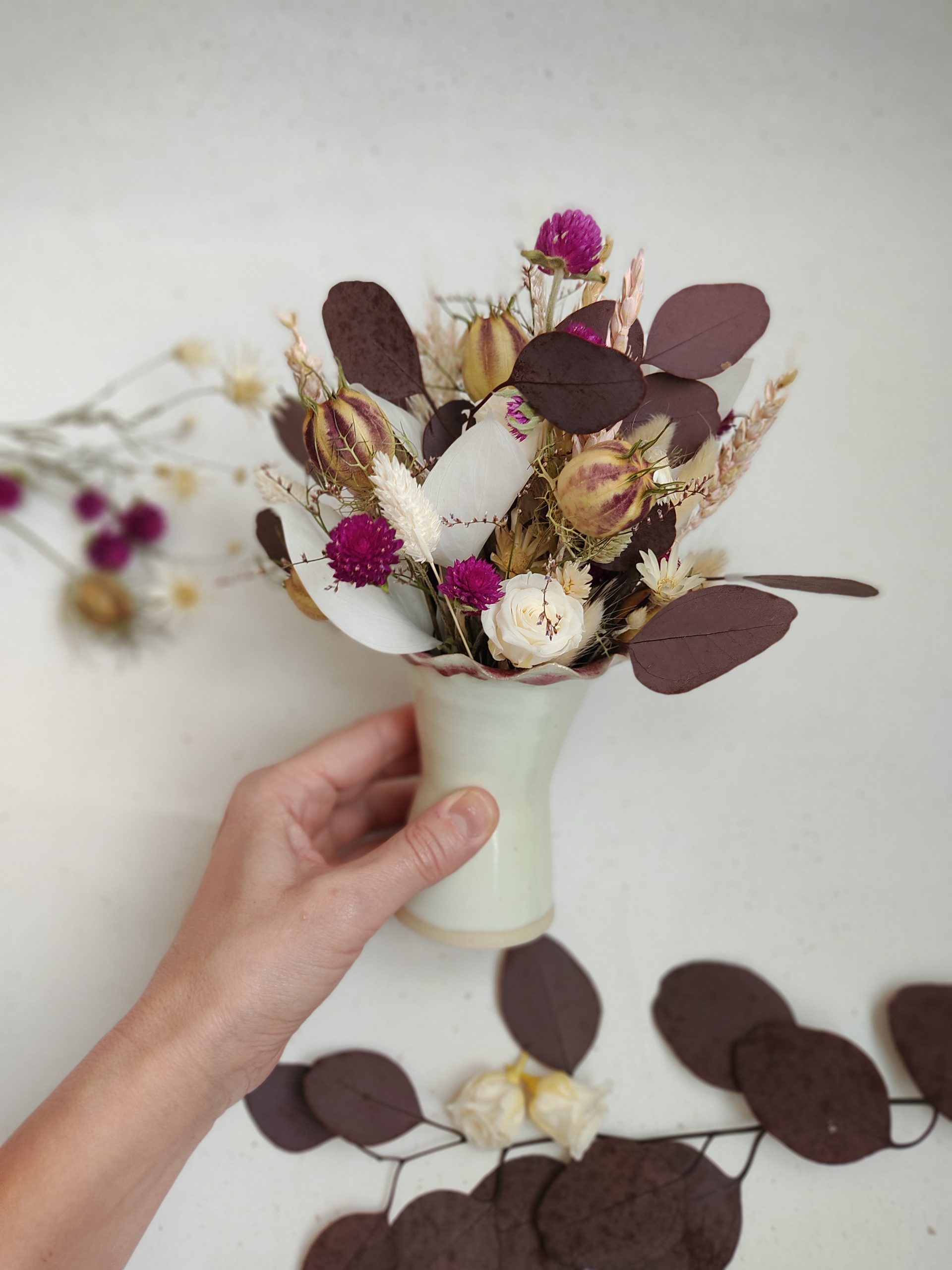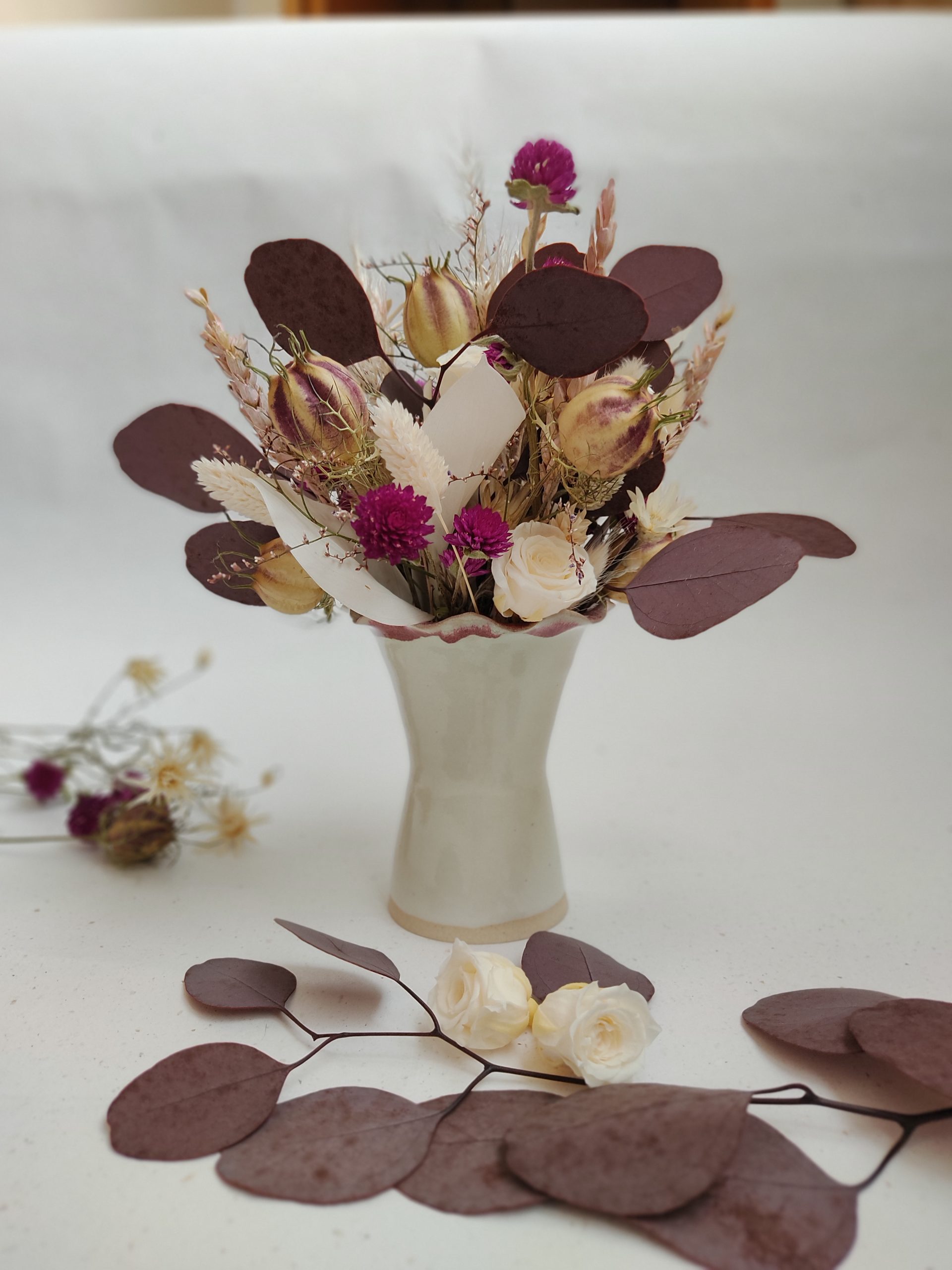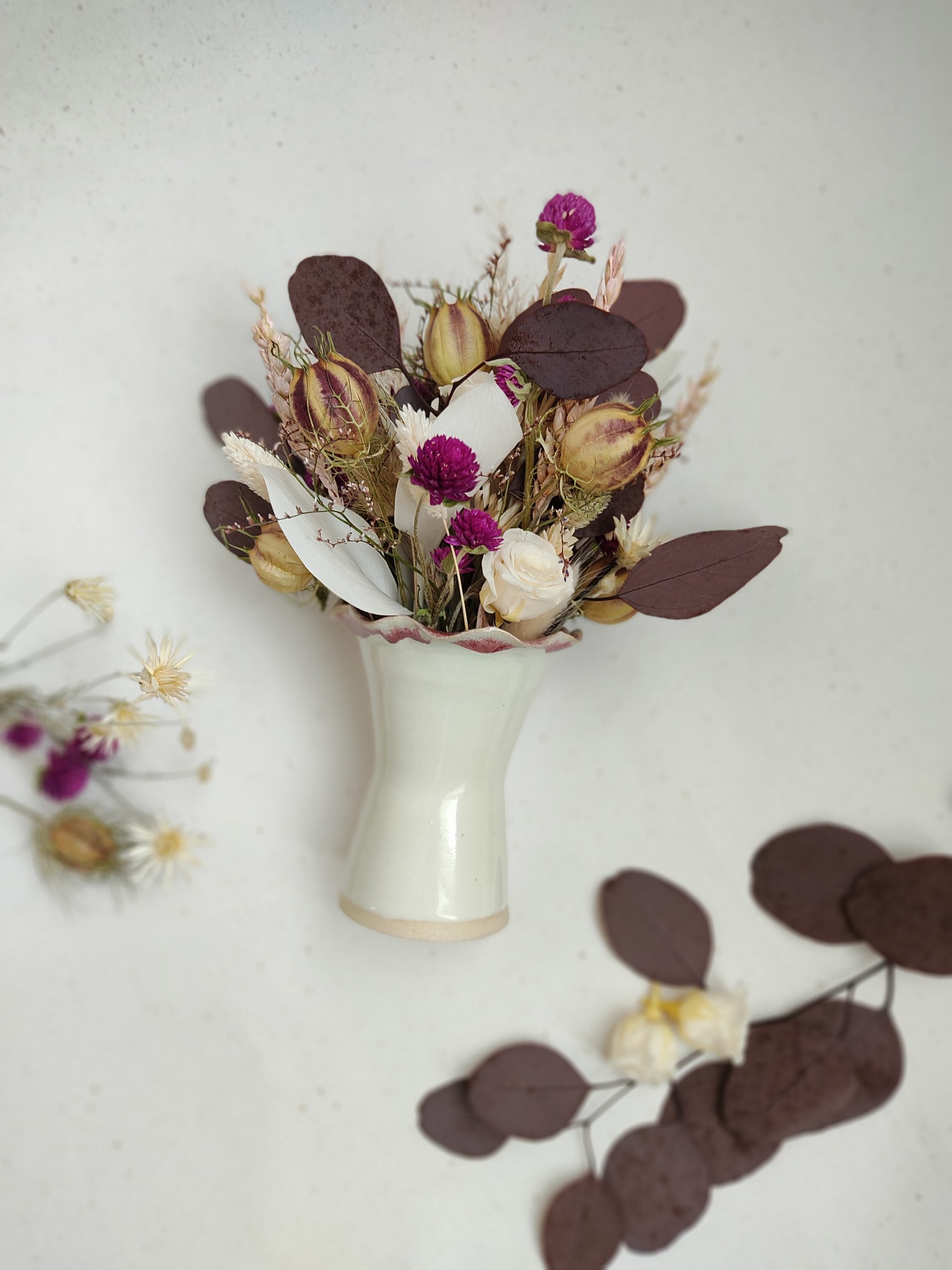 Je suis heureuse de vous présenter une belle rencontre entre deux univers : la céramique et les fleurs séchées.