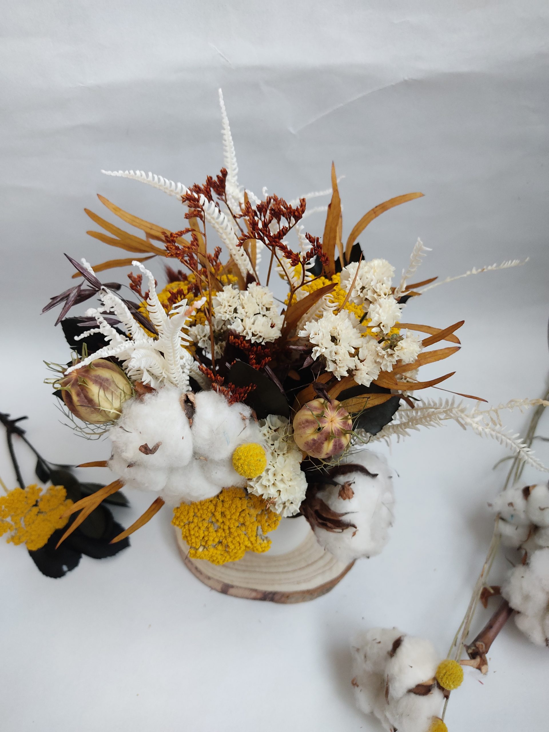 Mes compositions florales sont faites à la main, avec soin, pour réaliser des arrangements uniques. Du support au choix des fleurs, chaque élément est sélectionné et travaillé artisanalement.
